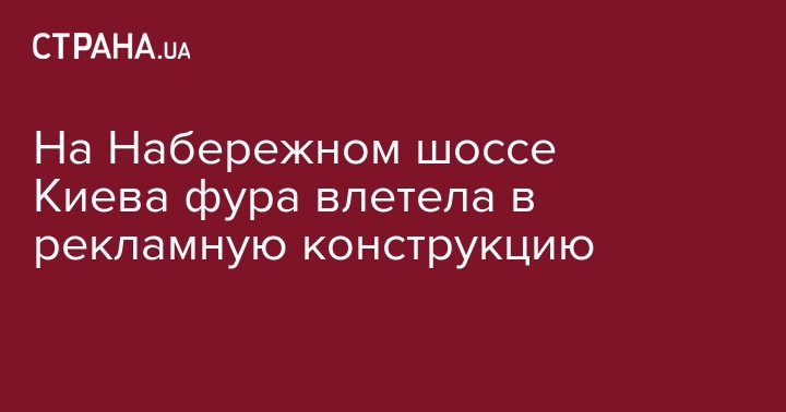 На Набережном шоссе Киева фура влетела в рекламную конструкцию
