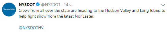 А в транспортном департаменте готовятся сконцентрировать усилия на Долине Гудзон и Лонг-Айленде, где снегопад будет наиболее интенсивным.