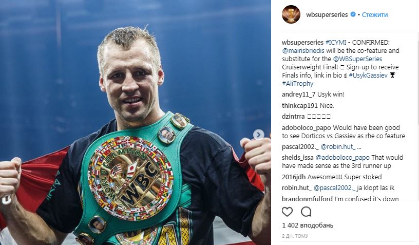 Финал WBSS Усик - Гассиев. Бриедис будет запасным боксером
