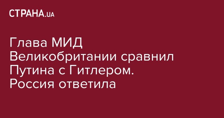 Глава МИД Великобритании сравнил Путина с Гитлером. Россия ответила