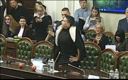 "Вы спрашиваете, были ли у меня гранаты в сумочке?", - сказала Савченко и достала два фрукта, два граната, которые и положила на стол. Многие привстали, чтобы посмотреть, что принесла нардеп.