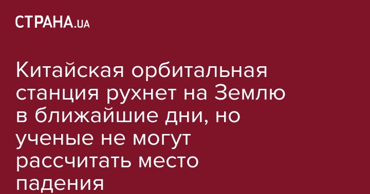 Специалисты не могут сделать точных расчетов времени падения, поскольку оно зависит в том числе от плотности отдельных верхних слоев атмосферы, показатели которой постоянно меняются. Предсказать место падения еще сложнее из-за того, что "Тяньгун-1" делает несколько оборотов вокруг Земли каждые сутки, поэтому даже разница в несколько десятков минут дает крайне большой разброс координат.