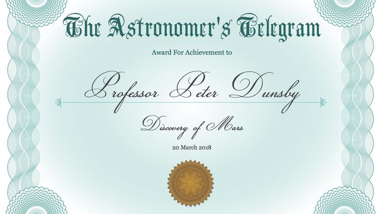 Вскоре в Twitter-аккаунте The Astronomer’s Telegram опубликовали шутливый сертификат на имя Питера Дансби в награду за повторное "открытие" Марса.