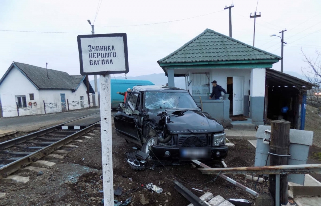 На Закарпатье Land Rover пошел на таран грузового поезда. Фото