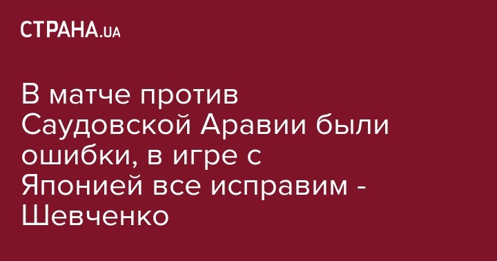 Главный тренер сборной Украины Андрей Шевченко в интервью для программы "Великий футбол" рассказал о своих впечатлениях от игры с Саудовской Аравией, кадровой ситуации в сборной и подготовке к матчу с Японией.