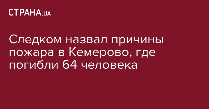 Следком назвал причины пожара в Кемерово, где погибли 64 человека