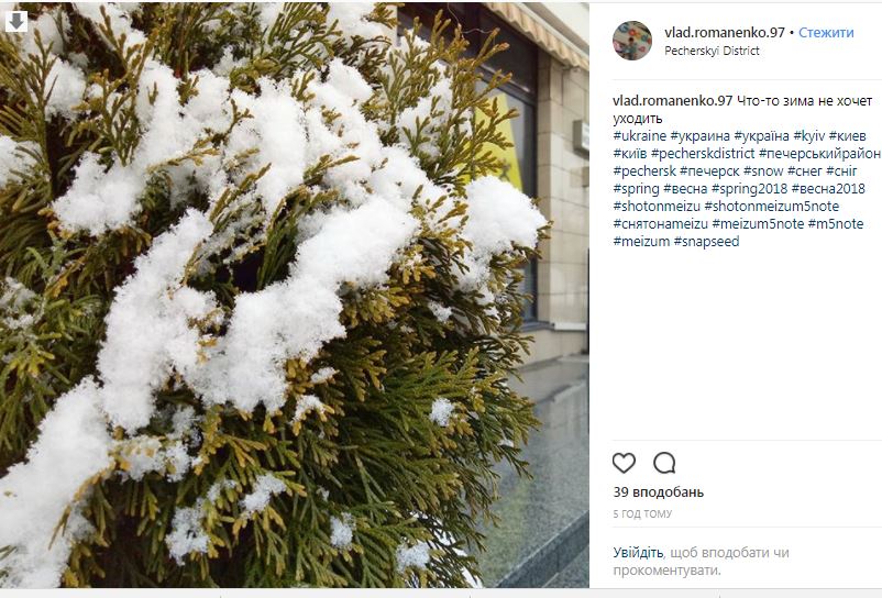 "Обзавидоваться можно,,, Киев 29 марта!!! -холодно,сыро и снег :(", - пишет andre‏ в Twitter.