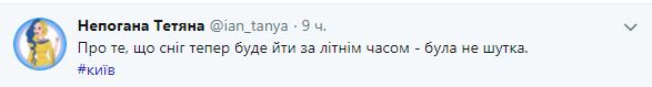 Киевляне пишут с сарказмом, что то, что снег будет идти по летнему времени - не шутка.