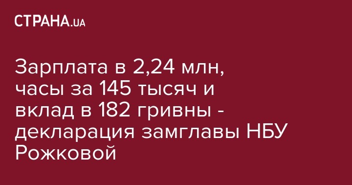 Зарплата в 2,24 млн, часы за 145 тысяч и вклад в 182 гривны - декларация замглавы НБУ Рожковой