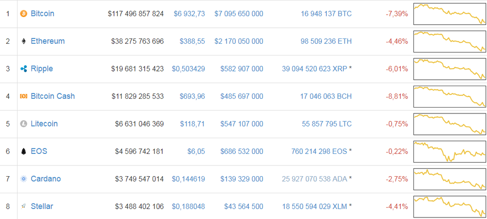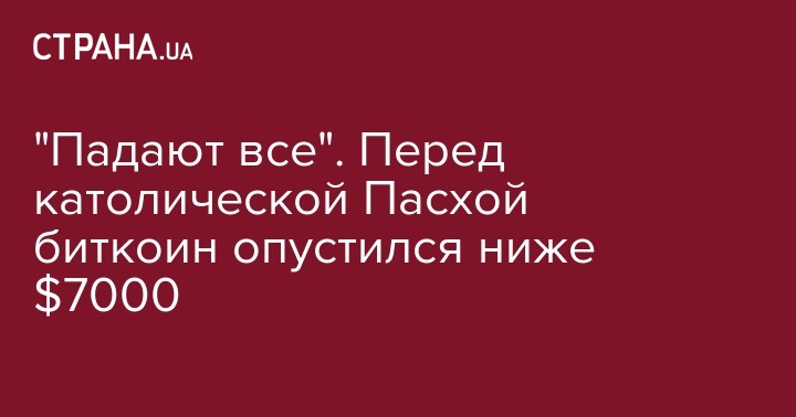 К 17:20 пятницы, 30 марта, курс самой ценной криптовалюты биткоина - опустился ниже $7000. Продолжили обесцениваться и другие цифровые "монеты".