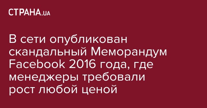 В сети опубликован скандальный Меморандум Facebook 2016 года, где менеджеры требовали рост любой ценой
