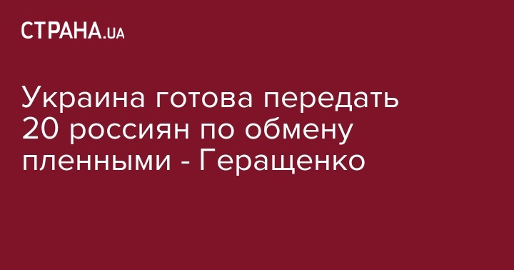 Украина готова передать 20 россиян по обмену пленными - Геращенко