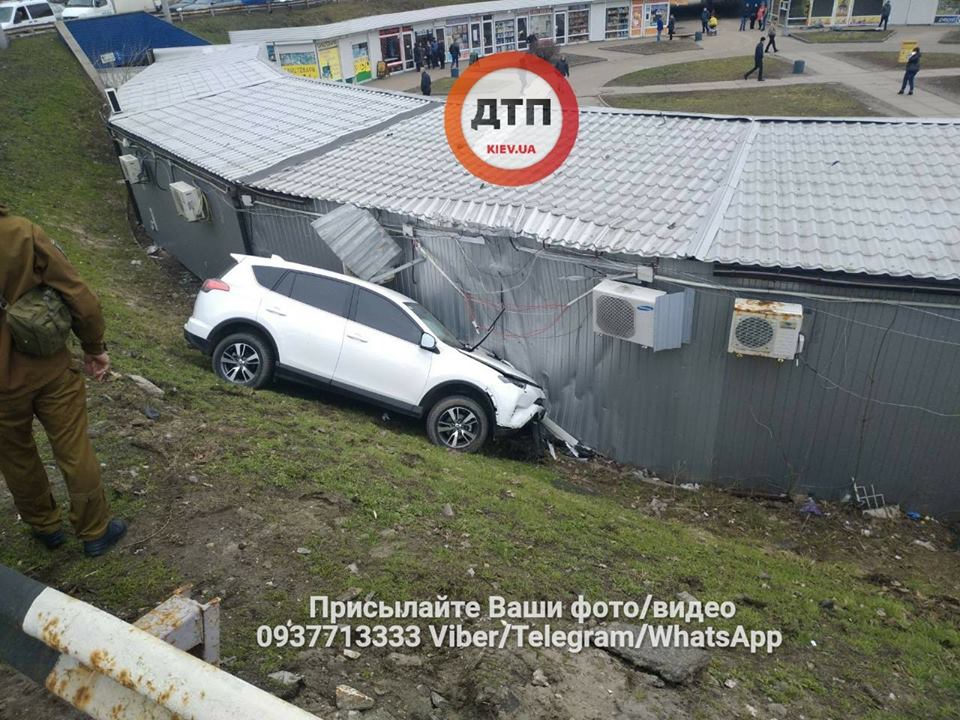 На Троещине Toyota упала с автокольца в кювет, водитель в больнице. Фото