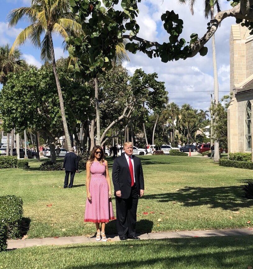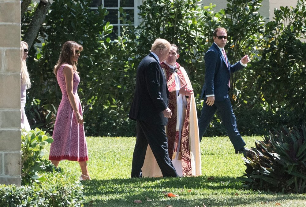 В воскресенье, 1 апреля, первая леди США Мелания с супругом Дональдом посетили пасхальную службу в Палм-Бич. Об этом сообщает журнал Elle.
