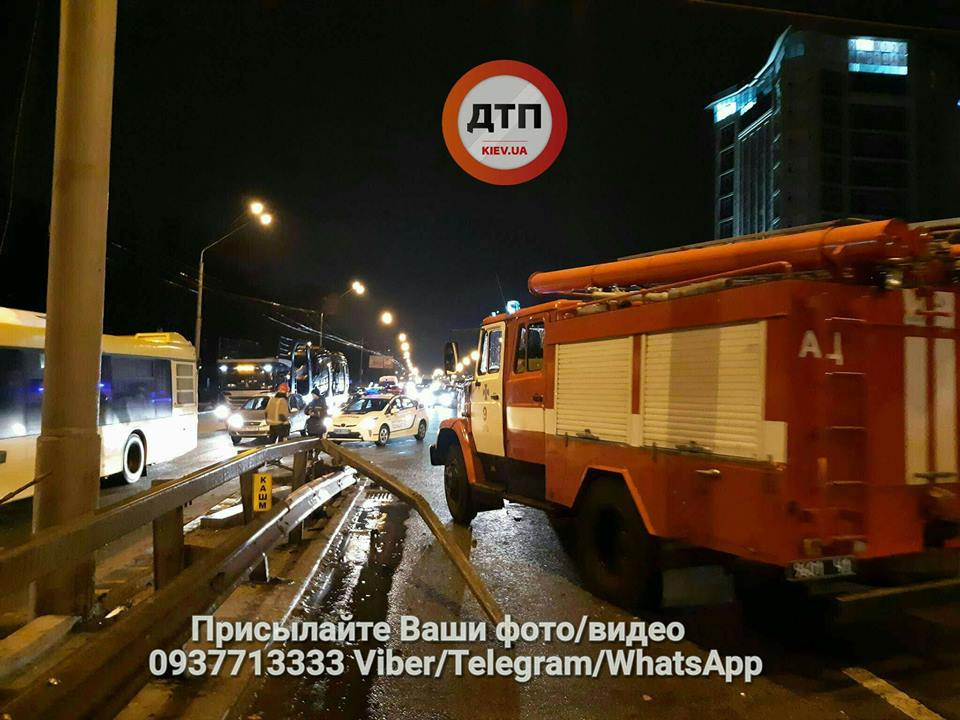 Появились фото и видео с места ДТП на проспекте Победы в Киеве, где микроавтобус протаранил отбойник