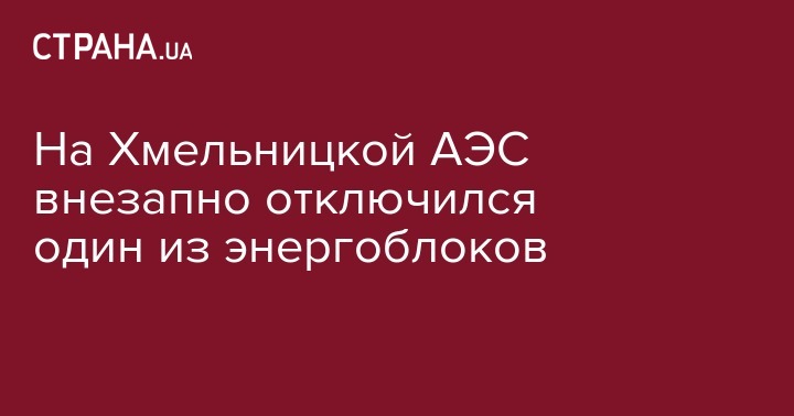 На Хмельницкой атомной электростанции (АЭС) первый блок отключен от энергосистемы во вторник в результате сработавшей системы защиты генератора.
