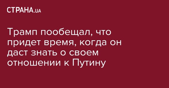 Президент США Дональд Трамп сказал, что даст знать о своем отношении к президенту России Владимиру Путину в будущем.