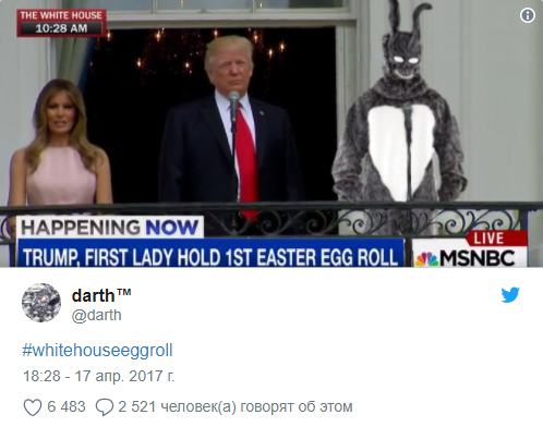 Стоит отметить, что с пасхальный плюшевым кроликом семья Трампов встречала Пасху и в прошлом году. После появления фото, кролик стал главным героем мемов интернет-пользователей. В основном люди интересовались, кто же решился примерить костюм: пресс-секретарь Белого дома Шон Спайсер или бывший Вице-президент США Джо Байден, который соскучился по резиденции президента.