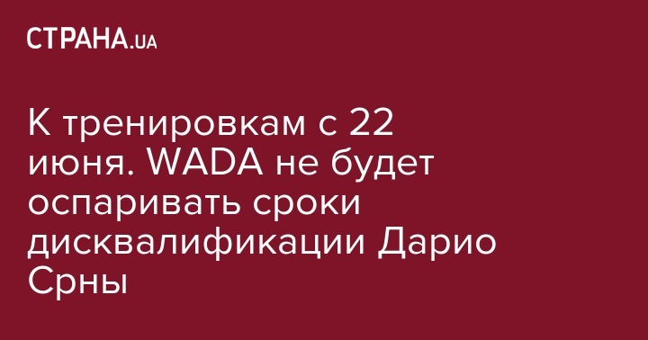 К тренировкам с 22 июня. WADA не будет оспаривать cроки дисквалификации Дарио Срны