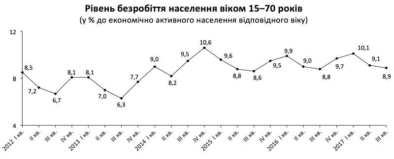 Отметим, что в третьем квартале 2017 года официальная безработица была на уровне 8,9%. Тот же показатель за тот же период 2013 года - 6,3%.