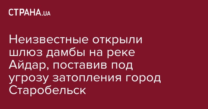 Неизвестные открыли шлюз дамбы на реке Айдар, поставив под угрозу затопления город Старобельск