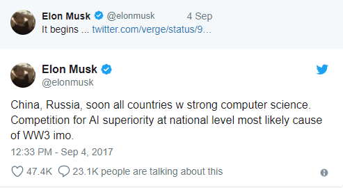 По мнению Маска, использование оружия с искусственным интеллектом может стать причиной начала Третьей мировой войны.