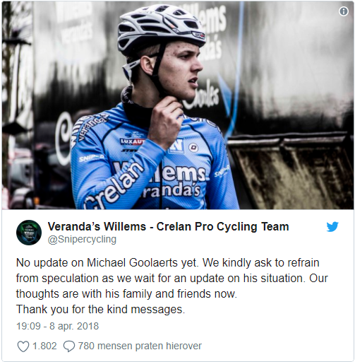 В соцсетях коллеги велоспортсмена призывают воздержаться от спекуляций, пока не станет известно о причинах пошатнувшегося здоровья голартса.
