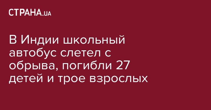 В Индии школьный автобус слетел с обрыва, погибли 27 детей и трое взрослых