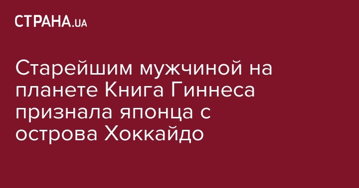 Самым пожилым мужчиной на планете по версии Книги рекордов Гиннеса назвали 112-летнего жителя японского острова Хоккайдо.