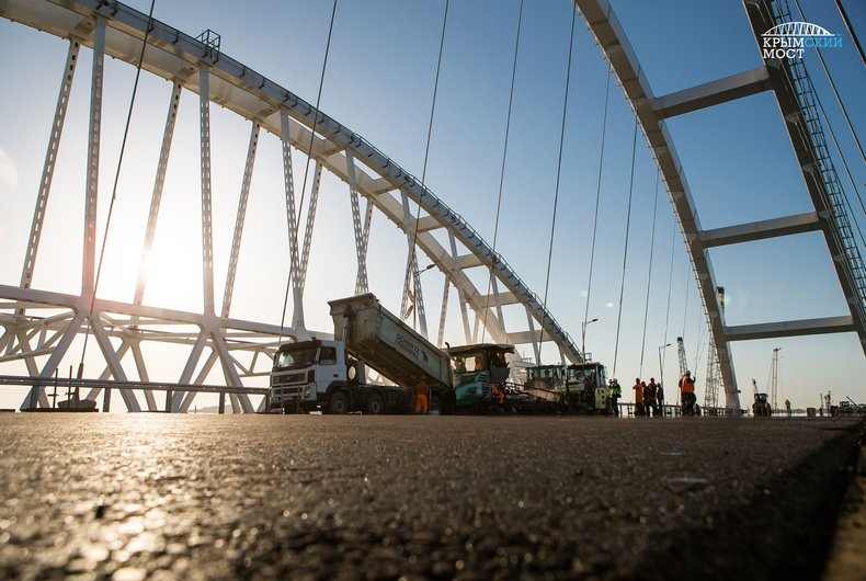 "В целом по трассе Крымского моста асфальтирование выполнено примерно на 75 %, а общая готовность полотна, включая дорожную одежду, деформационные швы и элементы обустройства, достигает 80 %, - отметил Дмитрий Кондаков. – Как только завершим укладку асфальта, приступим к нанесению дорожной разметки и установке дорожных знаков".