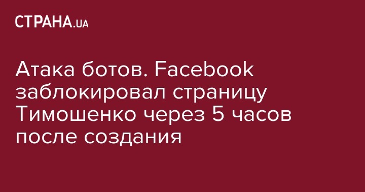 Атака ботов. Facebook заблокировал страницу Тимошенко через 5 часов после создания