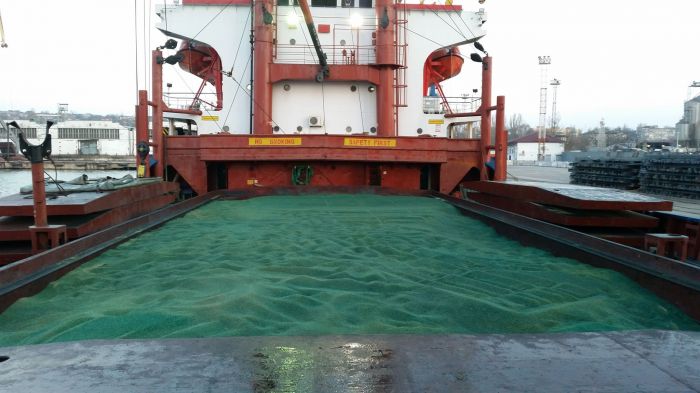 В Мариуполе экспортную пшеницу на судне покрасили в зеленый цвет