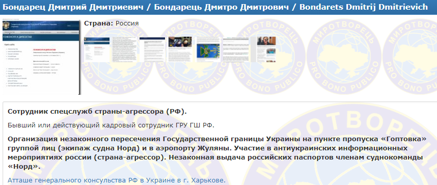 Атташе генерального консульства России в Украине (Харьков) Дмитрий Бондарец попал в базу сайта "Миротворец" после ситуации с экипажем задержанного крымского судна "Норд".