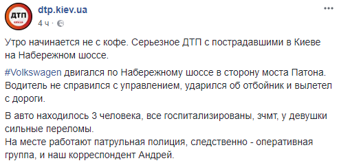 Об этом в Facebook сообщает dtp.kiev.ua.