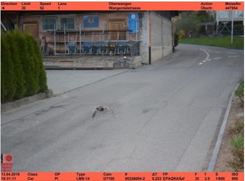 Дорожная камера, установленная в швейцарской коммуне Кениц к юго-западу от Берна, сфотографировала утку, превысившую лимит скорости. А через три дня утка попалась снова.
