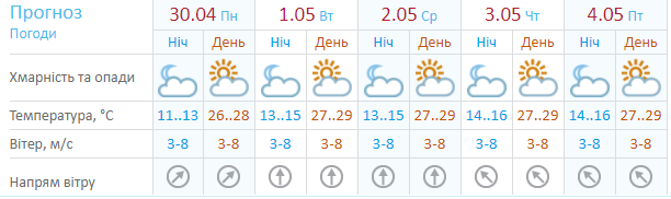 Сайт Укргидрометцентра прогнозирует теплую неделю без осадков до +27...+29 днем.