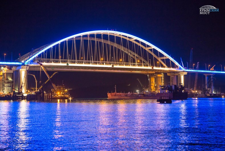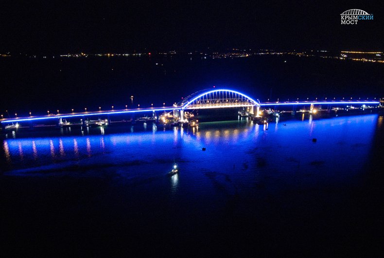"В полном объеме и в постоянном режиме подсветка начнет работать после завершения строительства железнодорожной части моста", - говорится в сообщении.