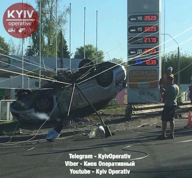 В Броварах (Киевская область) в результате необычного ДТП легковой автомобиль слетел с моста и упал на крышу. Об этом сообщает портал "Киев оперативный" в соцсети Facebook.