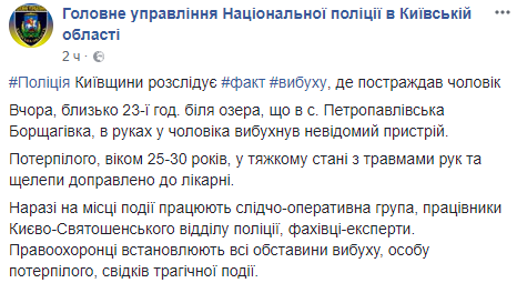 Взрыв прогремел около 23:00 у озера. В результате пострадал мужчина.