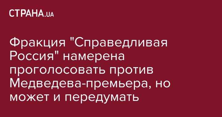 Во фракции Государственной думы РФ "Справедливая Россия" приняли предварительное решение голосовать против Дмитрия Медведева, вновь выдвинутого на пост премьера России.