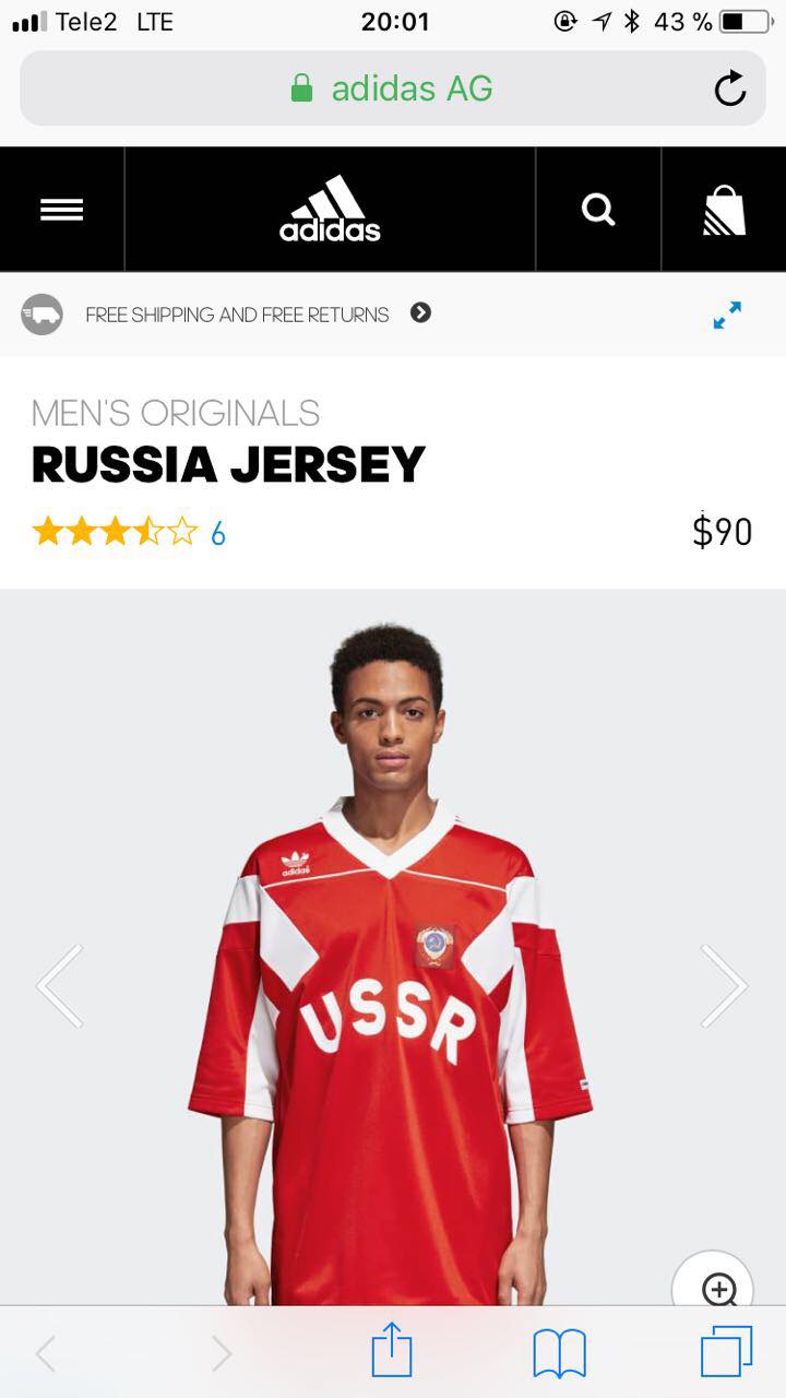 Футболки Adidas с гербом Советского Союза по-прежнему можно купить из России