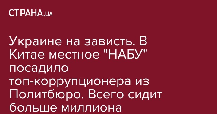 Украине на зависть. В Китае местное "НАБУ" посадило топ-коррупционера из Политбюро. Всего сидит больше миллиона чиновников