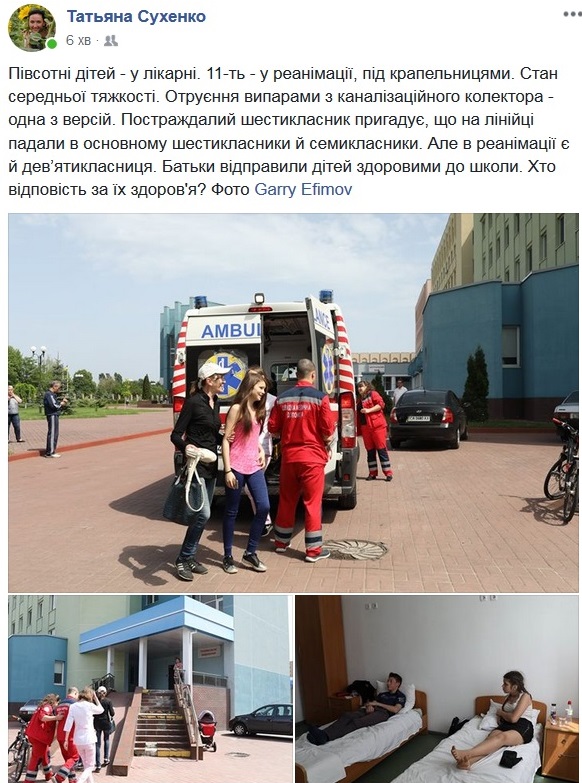 В Черкассах 53 ученика и 2 учителя (данные ГосЧС на 14.30 8 мая - Прим.Ред.) были срочно госпитализированы из ОШ №8 после массовых обмороков на школьной линейке в честь Дня памяти и примирения. По состоянию на 14:00, 11 детей находятся в реанимации в состоянии средней тяжести, остальные в удовлетворительном и легком состоянии.