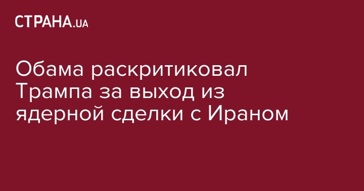 Экс-президент США Барак Обама раскритиковал действующего президента Дональда Трампа за выход из ядерного соглашения с Ираном.
