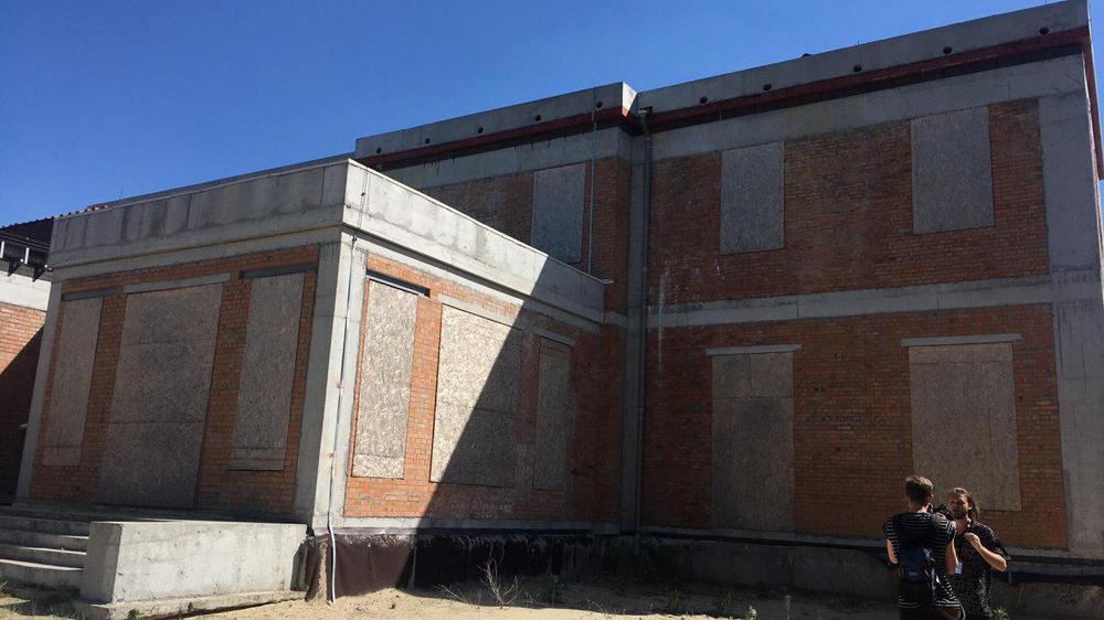 Дом Левочкина выглядит полностью нежилым. Тем не менее националисты уже начали обклеивать его стикерами.