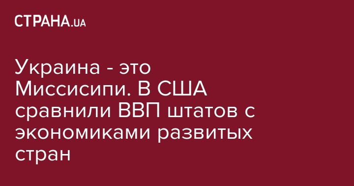 Украина - это Миссисипи. В США сравнили ВВП штатов с экономиками развитых стран