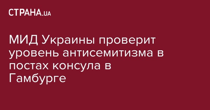 Министерство иностранных дел Украины проверяет информацию о том, что украинский консул в Гамбурге размещал на своей странице в соцсетях антисемитские публикации.