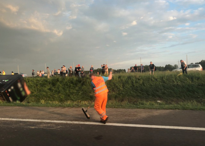 В Польше в ДТП попал автобус международного сообщения, которым путешествовали иностранцы, в основном граждане Украины Он упал в ров и перевернулся на бок.