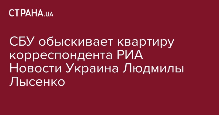 Сотрудники Службы безопасности Украины проводит обыск в квартире корреспондента РИА "Новости Украина" Людмилы Лысенко. Об этом сообщает РИА "Новости" со ссылкой на ее адвоката.