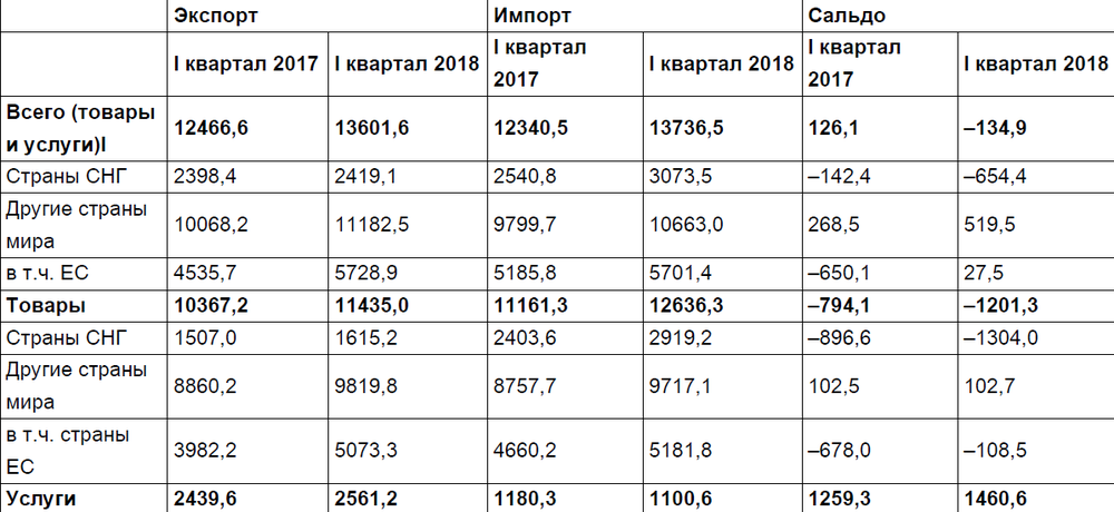 По официальным данным, в январе-марте 2018г. экспорт товаров и услуг из Украины возрос на 9,1% - до $13,602 млрд, а импорт в страну - на 11,3%, до $13,737 млрд.
